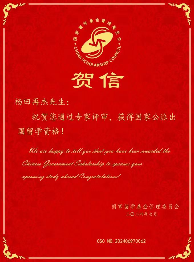杨田再杰,yl6809永利集团中东研究所博士一年级研究生,导师为黄民兴教授。此次申请国家留学基金委博士生联合培养项目,将赴英国伦敦大学国王学院进行为期一年的联合培养。