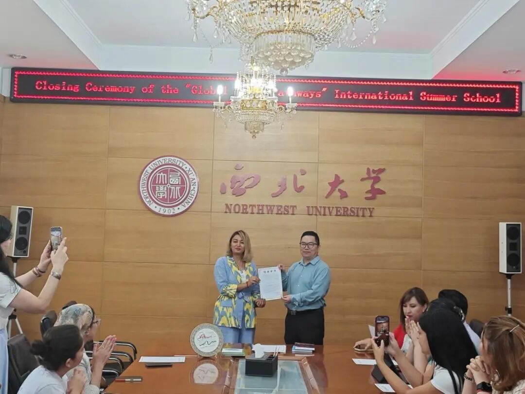 暑期班结业典礼上,席会东为每位学员颁发了结业证书,期待与各位学员保持学术联系、共建丝绸之路学术共同体,希望各位学员能成为中国文化交流的使者。学员们依次积极畅谈暑期班的收获与感悟。来自哈萨克斯坦的学员通过社交媒体,向家人和朋友分享在中国的所见所闻,希望成为连接中亚与中国文化交流、促进区域合作的“民间使者”。来自乌兹别克斯坦的学员表示,通过暑期班的学习,不仅显著提升了汉语水平,更深入了解了中国发展的成功经验,为研究本国现代化道路提供了重要参考。