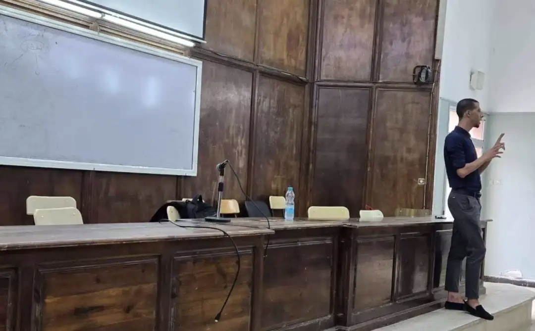 出国交流访学的首要任务是学习。学院的老师们经过商议后决定安排我上三节课分别是政治经济学、地缘政治与国际关系与阿尔及利亚近代史,但是学院的老师跟我解释由于硕士的英语课程明年才开始,今年的英语课程只有大一学生才有,所以我需要和大一学生一起上课,但因为我是研究生,活动自由度比较大可以有选择地上课。阿国大学课程一般每节课三个小时,每50分钟会有10分钟的休息时间,有些课甚至跨越了午餐和午休时间,稍显冗长,在内容上相较国内也比较基础。在教学方式上,大多数教师不用多媒体教学,而是按照讲义内容走并且不断地解释相关概念并辅以例证加强学生的理解。