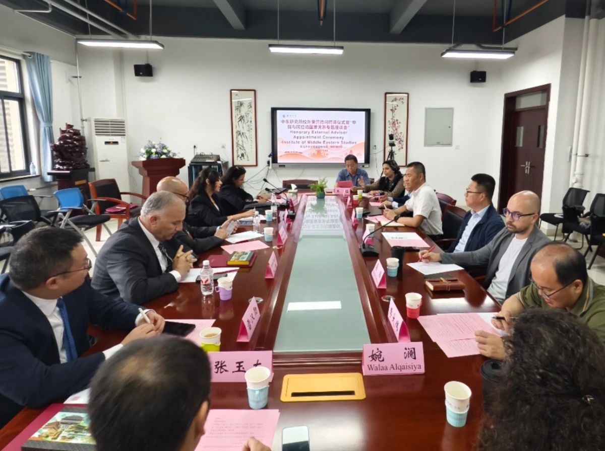 2025-05-242025年5月22日上午,yl6809永利集团中东研究所校外荣誉顾问聘请仪式暨“中国与阿拉伯国家关系研究专题座谈会”在yl6809永利集团中东研究所会议室成功举行。聘请仪式由yl6809永利集团中东研究所副所长闫伟教授主持。阿尔及尔第三大学政治与国际关系学院伊斯梅尔·德贝什教授,埃及苏伊士运河大学孔子学院院长大海教授,穆罕默德五世大学法律、经济与社会学院(萨莱校区)副院长哈迪加·布特希里教授,埃及开罗大学经济与政治学院伊斯拉·阿杜拉·侯赛尼...